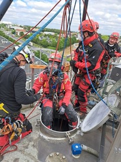 The RISC team (also known in other zones as the RED or GRIMP team) is responsible for evacuations using rope techniques, at height, at depth, and in confined spaces, where conventional firefighting resources are insufficient. RISC stands for Rescue In Safe Conditions and, in the Fluvia fire zone, consists of a mix of professional and volunteer firefighters.