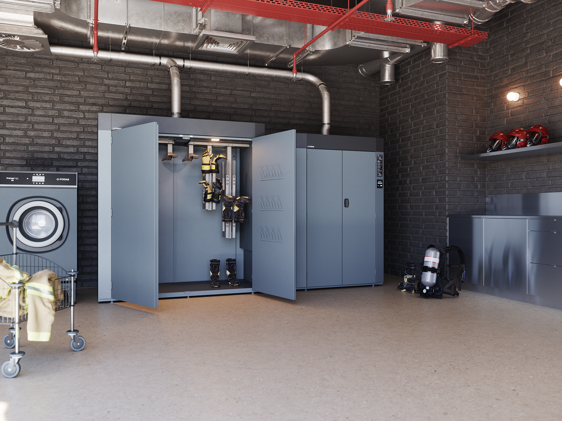 Nous proposons également des cabines de séchage Novven et Podab, idéaux pour le séchage efficace des tenues d’intervention, bottes, gants, casques et composants respiratoires.