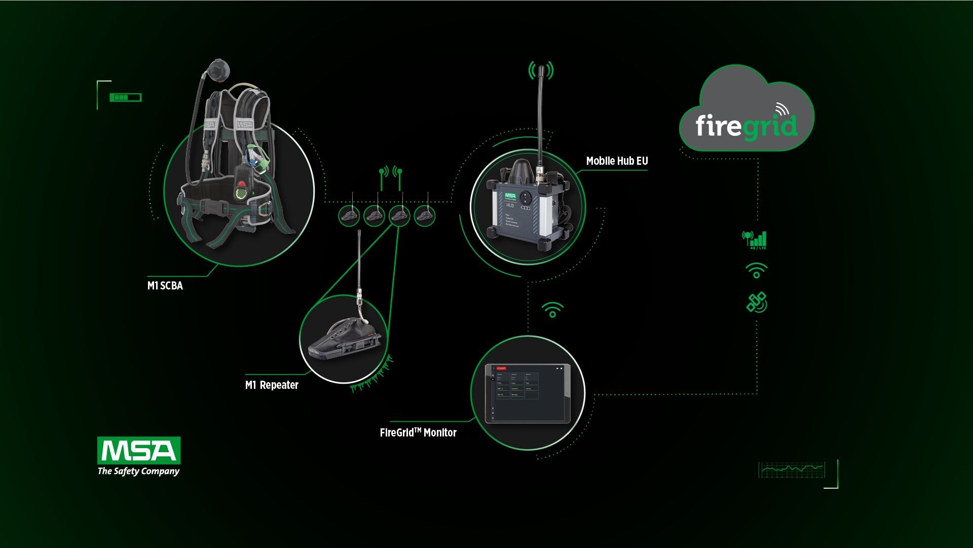 Mobile Hub EU - Captures live data from the M1 SCBA and instantly transmits it to the FireGrid app, keeping incident command connected to crews in real time.