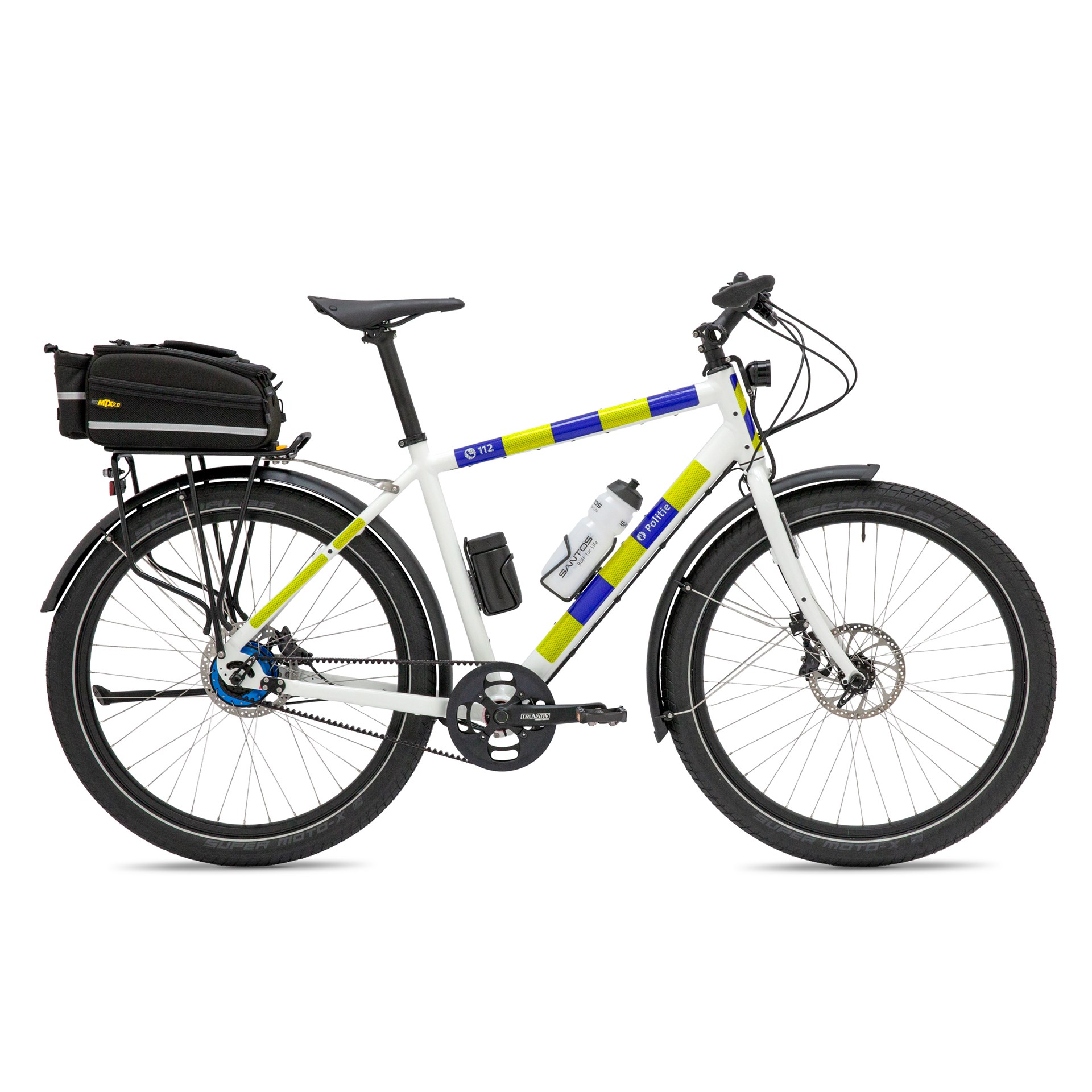 De Santos Patrol Bike is ontwikkeld voor professioneel en intensief gebruik in de openbare ruimte. Wendbaar, efficiënt en direct inzetbaar bij calamiteiten en noodsituaties. Dankzij de robuuste constructie en onderhoudsarme opbouw is de fiets geschikt voor dagelijkse inzet onder uiteenlopende omstandigheden.